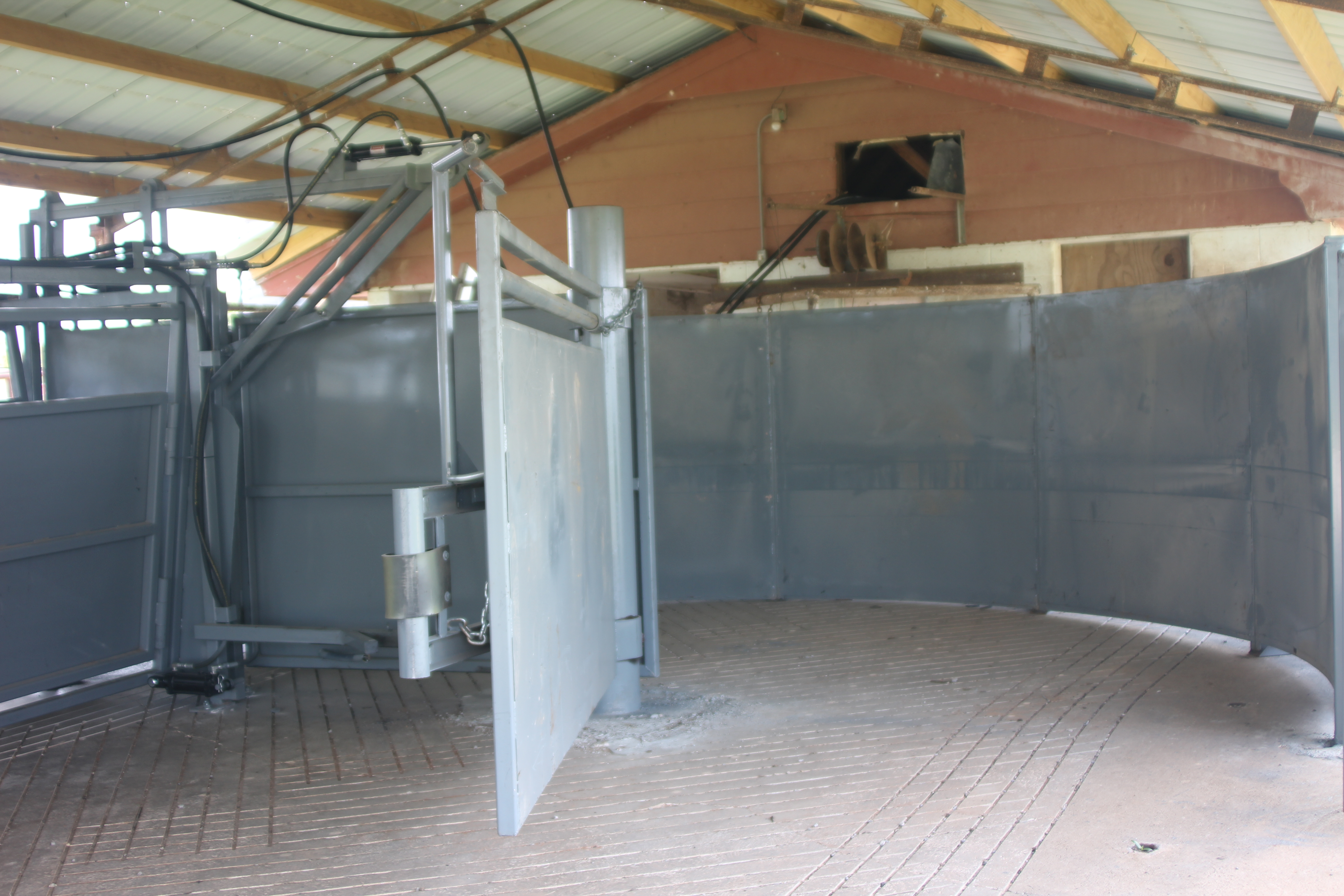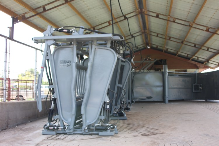 This is the Trojan 816 Equipped with a side exit, palpation door and floating gates along with a bleeder.